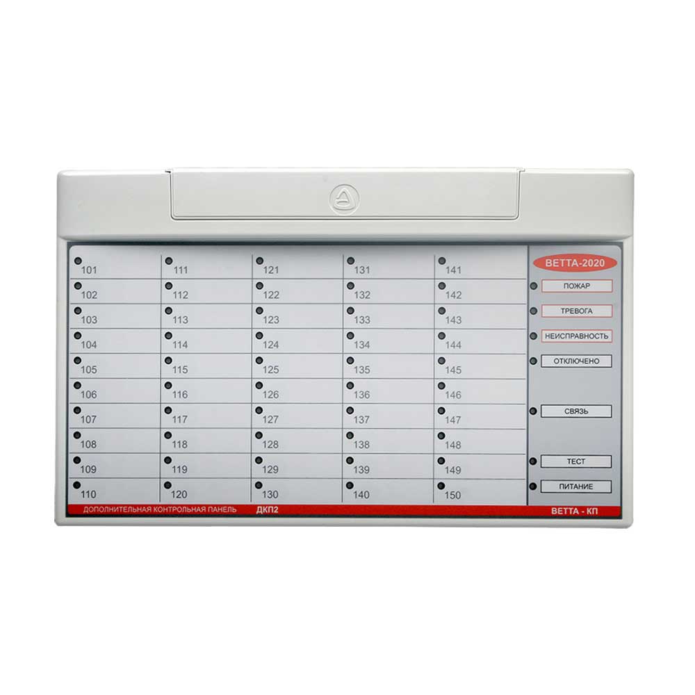 «Сибирский Арсенал» «Ветта-ДКП-2» как часть многокомпонентного пультового прибора «Ветта-КП» в составе системы «Ветта-2020» («Ветта-2020» объединяет до 40 объектовых приборов, осуществляет централизованный контроль состояния до 200 адресных зон пожарной и охранной сигнализации, содержащих до нескольких тысяч извещателей, обеспечивает управление объектовыми приборами) выполняет функцию дополнительной контрольной панели под управлением основной — контролирует до 50 адресных зон. Количество каналов индикации состояния зон объектовых приборов и УППУ — 50 (номера 101 ~ 150). Интерфейс связи — RS-485. Питание — DC 12 V (два входа для резервирования). Размер — 291.2×179.2×31.6 мм. Вес — 600 г. Рабочая температура — –30 °С… +55 °С. Защита от пыли и влаги — IP30.