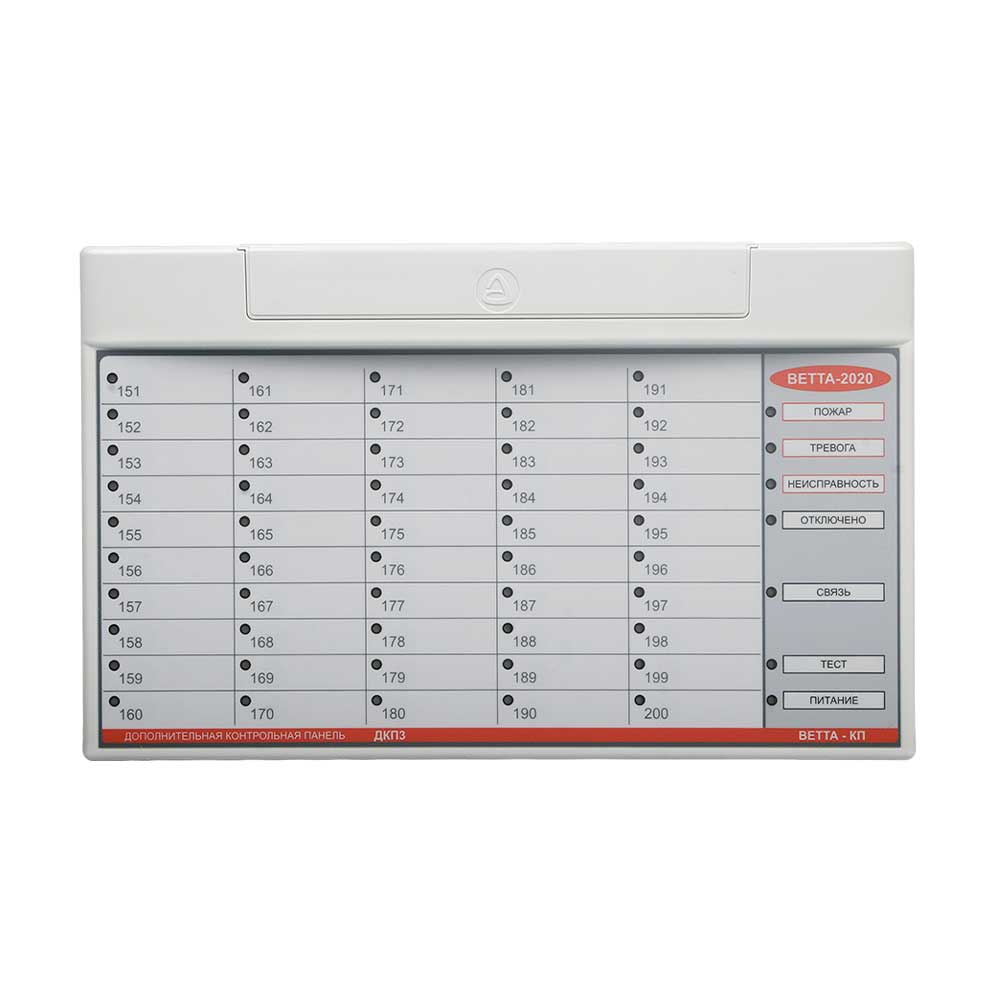 «Сибирский Арсенал» «Ветта-ДКП-3» как часть многокомпонентного пультового прибора «Ветта-КП» в составе системы «Ветта-2020» («Ветта-2020» объединяет до 40 объектовых приборов, осуществляет централизованный контроль состояния до 200 адресных зон пожарной и охранной сигнализации, содержащих до нескольких тысяч извещателей, обеспечивает управление объектовыми приборами) выполняет функцию дополнительной контрольной панели под управлением основной — контролирует до 50 адресных зон. Количество каналов индикации состояния зон объектовых приборов и УППУ — 50 (номера 151 ~ 200). Интерфейс связи — RS-485. Питание — DC 12 V (два входа для резервирования). Размер — 291.2×179.2×31.6 мм. Вес — 600 г. Рабочая температура — –30 °С… +55 °С. Защита от пыли и влаги — IP30.