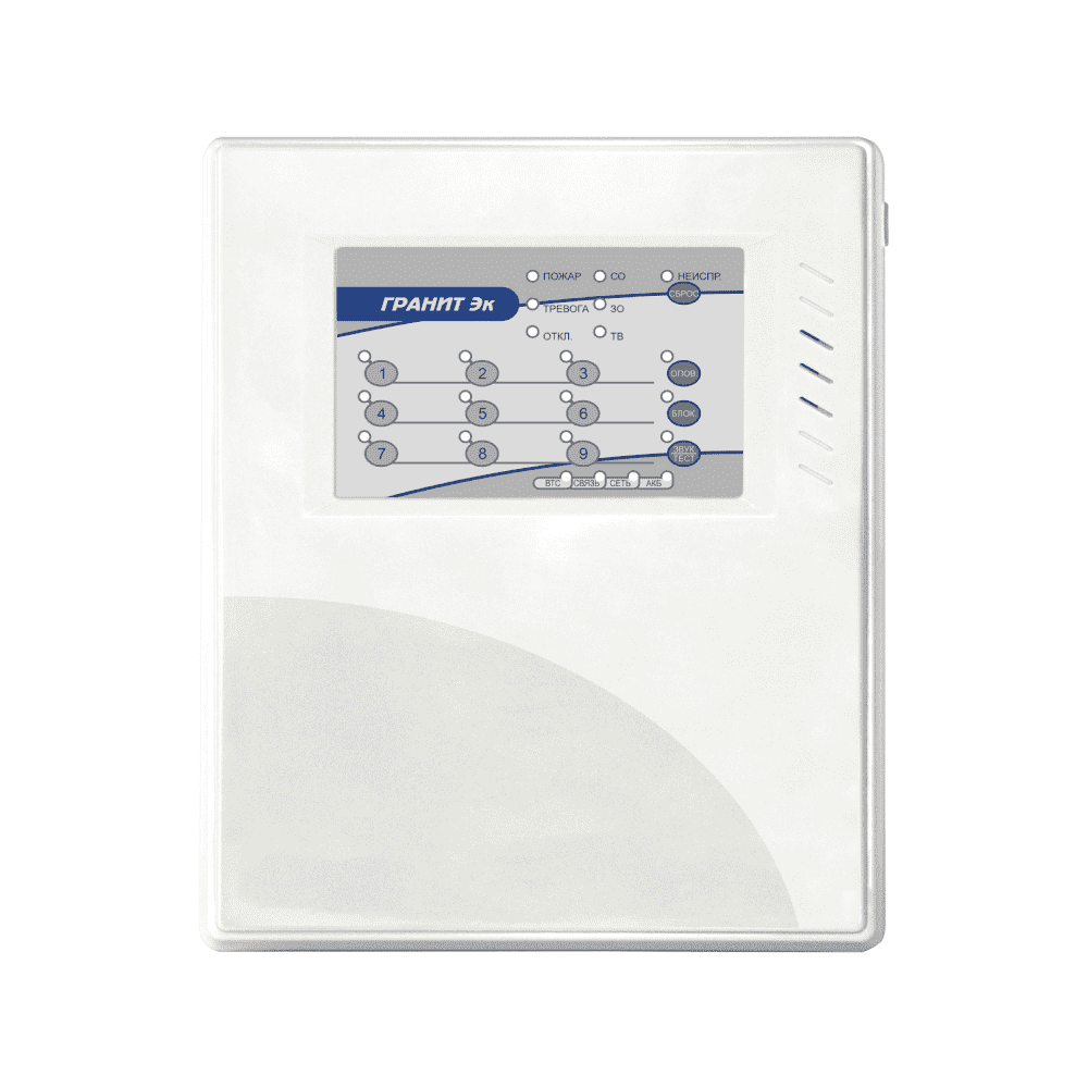 Контрольный прибор «Сибирский Арсенал» «Гранит-9 Эк» рассчитан на девять шлейфов сигнализации. Укомплектован четырьмя реле. Оповещает о тревоге и других событиях с помощью световых и звуковых оповещателей, табло «Выход», контактами реле. Отвечает требованиям стандарта по электромагнитной совместимости ГОСТ Р 53325.