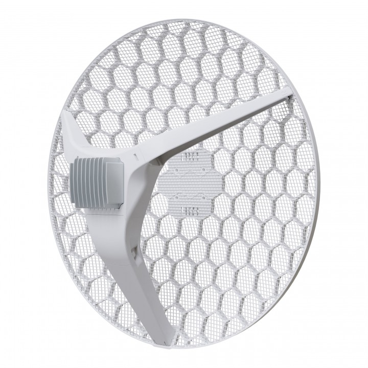 - Мощная встроенная сетчатая антенна с коэффициентами усиления: 27 дБи для 5 ГГц и 18 дБи для 2.4 ГГц