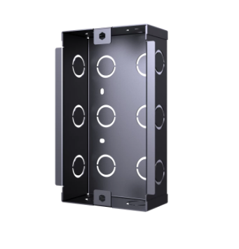 Данная металлическая монтажная коробка предназначена для установки IP вызывных панелей серии Akuvox R20A в стены из бетона, кирпича и других материалов. Конструкция коробки предусматривает точное соответствие посадочных отверстий расположению крепежных болтов на лицевой панели устройств серий R20A. На задней и боковых стенках коробки имеются предварительно промаркированные линии для вырезания отверстий, что позволяет гибко адаптировать монтаж к конкретным требованиям и способу ввода кабельного жгута.
